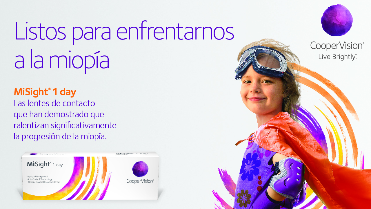 Afortunadamente, tu hijo puede beneficiarse de una tecnología innovadora para que su vida sea más fácil y ayudar a disminuir la velocidad de la miopía1: los lentes de contacto MiSight® 1 day de CooperVision. Los lentes de MiSight 1 day con tecnología ActivControl® no solo corrigen la miopía, también son los primeros lentes de contacto blandos que han demostrado reducir significativamente la progresión de la miopía en niños*†1. Si usa lentes de contacto MiSight, tu hijo puede experimentar una visión clara, sin anteojos y continuar disfrutando de las actividades que le gustan.